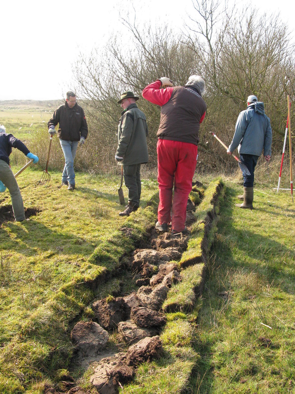 Elk voorjaar krijgen vrijwilligers van de Werkgroep Kwadijkervlot uit Purmerend, onder leiding van Ben Brugge, de opdracht om een nieuwe tuinwal aan te leggen of een oude tuinwal op te knappen. In voorjaar 2014 mochten zij een nieuwe tuinwal aanleggen achter Ecomare. Het was hard werken.